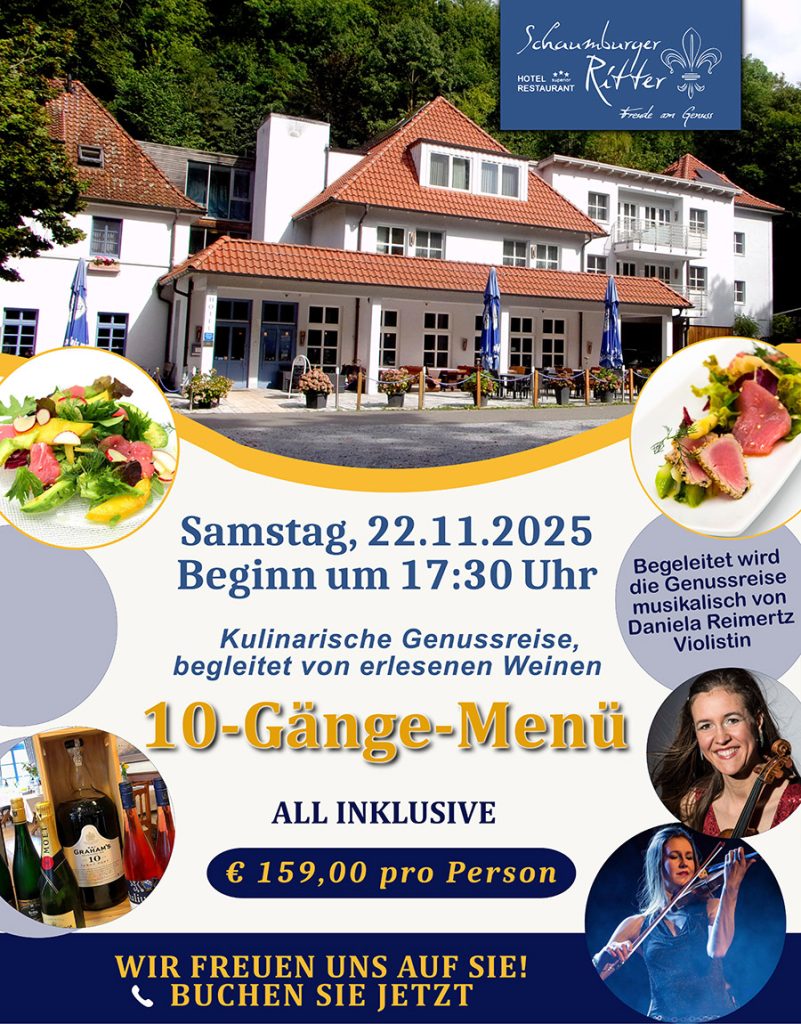 Culinary events and events take place regularly in the Schaumburger Ritter. Reserve your seats right here on our website.